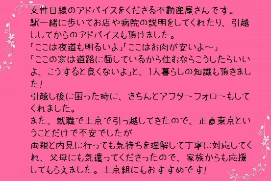 女性のお客様からの口コミ 女性目線のアドバイスをくれる不動産屋さん
